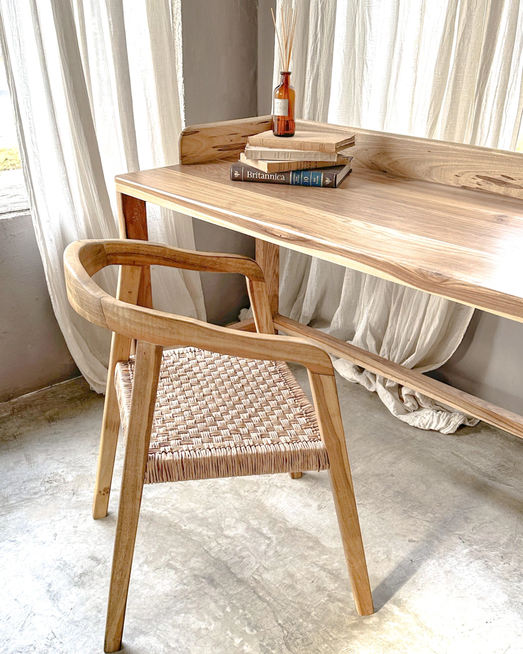 Fusiona elegancia y funcionalidad. Fabricado en madera maciza de Petiribi, su diseño sofisticado y clásico se caracteriza por líneas simples que se adaptan a cualquier espacio de trabajo.
