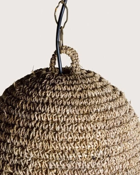 La Lámpara Colgante Jaithara está elaborada con fibra natural de alta calidad, aportando un toque de calidez y elegancia a cualquier ambiente. Su diseño único y artesanal crea una atmósfera acogedora, ideal para espacios que buscan un estilo orgánico y sofisticado.