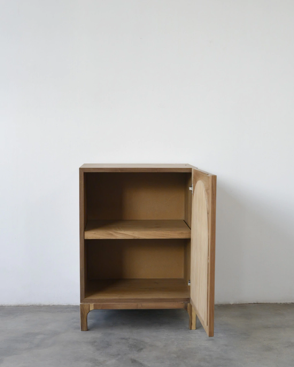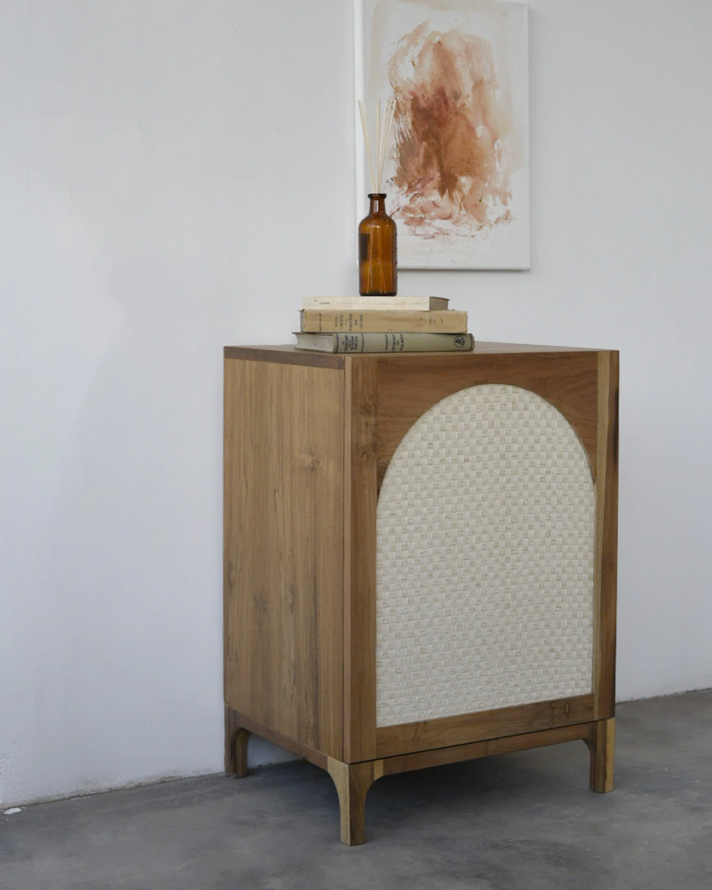 Se identifica por su apariencia suave y su encanto. Lo sutil de sus curvas, la textura del tejido en la puerta brindan a cualquier ambiente calidez, integrándose y potenciando cualquier espacio. Producida en madera maciza de Petiribi, puerta con cierre suave.